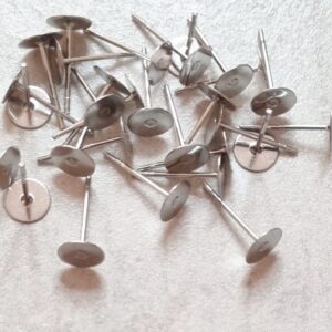 316 Surgical Stainless Steel Flat Round Blank Peg Stud Earring 12x5mm Tray: 5mm 20pcs