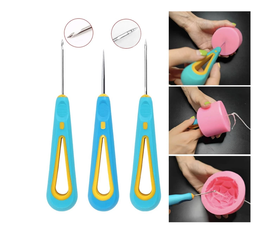 - VERSATILE SET: 3-piece different size punch needle wick tool designed specifically for candle making and silicone mold preparation