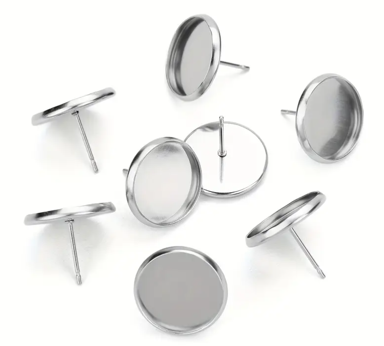 Flat Round 304 Stainless Steel Stud Earring Settings, Stainless Steel Color